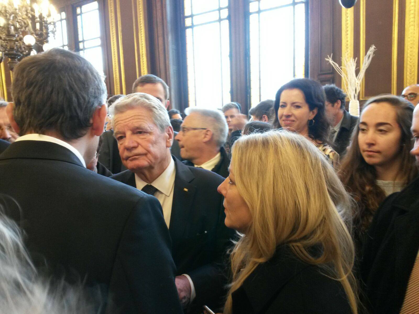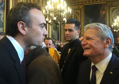 Vom Austragungsort des Prix Goncourt, Gesprächen mit dem Commissariat des Ehrengastes und den literarischen Beratern und dem Verlagsverband-Präsidenten, einem Empfang mit Bundespräsidenten Gauck anlässlich seiner Ehrendoktorwürde an der Sorbonne, dem Besuch des einziges Literaturhauses Frankreichs, der „Nuits des idées“ in der Machine du Moulin Rouge, einem Besuch bei der Mannschaft von Antoine Gallimard in der ehrwürdigen Verlagsräumen bis zu einem Mittagessen mit weiteren Verlagen im legendären „Deux Magots“ – wir haben nichts ausgelassen. Weiter geht’s mit diesem wunderbaren Projekt!