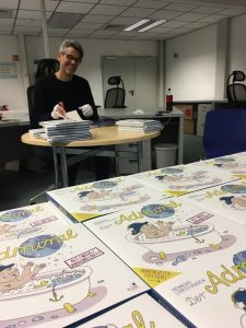 Der KJM Buchverlag hat sich für die erste Auflage seiner Cartoon-Erzählung „Der Admiral. Alt- Weiss- Abgemeldet?“, die heute erschienen ist, etwas Besonderes einfallen lassen: Die Erstauflage wird handsigniert ausgeliefert. Der bekannte Titanic-Magazin-Zeichner Henning Christiansen war dafür letzte Woche fleißig am Signieren. Er zeichnet und erzählt von einer tragisch-komischen, unmodernen Figur. Die großen Schlachten des Admirals sind geschlagen. Seine Träume zerschellen permanent am Riff der Realität. Begleiten sie den kleinen Helden durch die Untiefen seiner Existenz. Bevor er das akzeptiert, soll ihn die Welt noch mal kennenlernen!