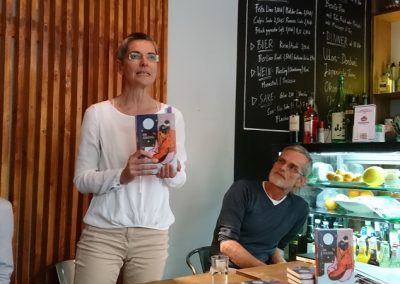 22.05.2017: Zum 19. Mal fand am Samstag rund um die Kreuzberger Oranienstraße in Berlin die „Lange Buchnacht“ statt. Mittendrin: Katja Cassing und Jürgen Stalph mit dem von ihnen übersetzten Roman „Der Schlüssel“ von Junichiro Tanizaki, der in ihrem eigenen cass verlag erschienen ist. Ein japanischer Leser lieferte einen kurzen Eindruck vom Text in der Originalsprache. Das passende Ambiente lieferte als Veranstaltungsort der japanische Deli Tsukushiya, in dem das zahlreich vertretene Publikum im Anschluss an die Lesung noch authentische Leckereien genießen konnte.