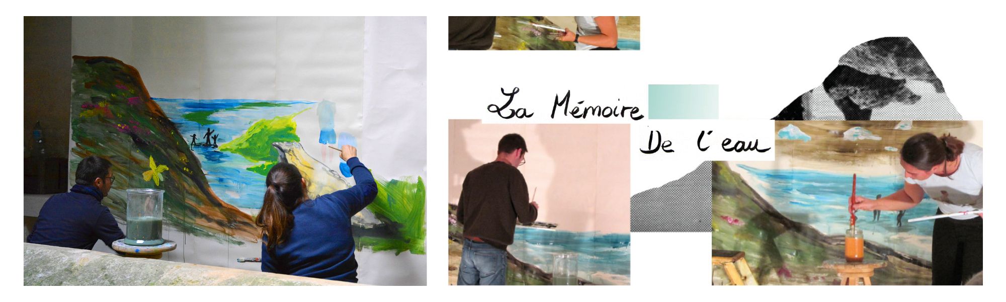 Mit diesen Fragen experimentieren Élise Franck, Émilien Sarot und Hélène Merlin in “La Mémoire de l’eau” (Das Gedächtnis des Wassers). Während der ganzen Performance spielt die Schauspielerin und Autorin Hélène Merlin damit, Wasser aus aller Welt mit den Temperafarben der Künstler:innen zu mischen, die improvisierend auf die dadurch hervorgerufenen Emotionen reagieren,.