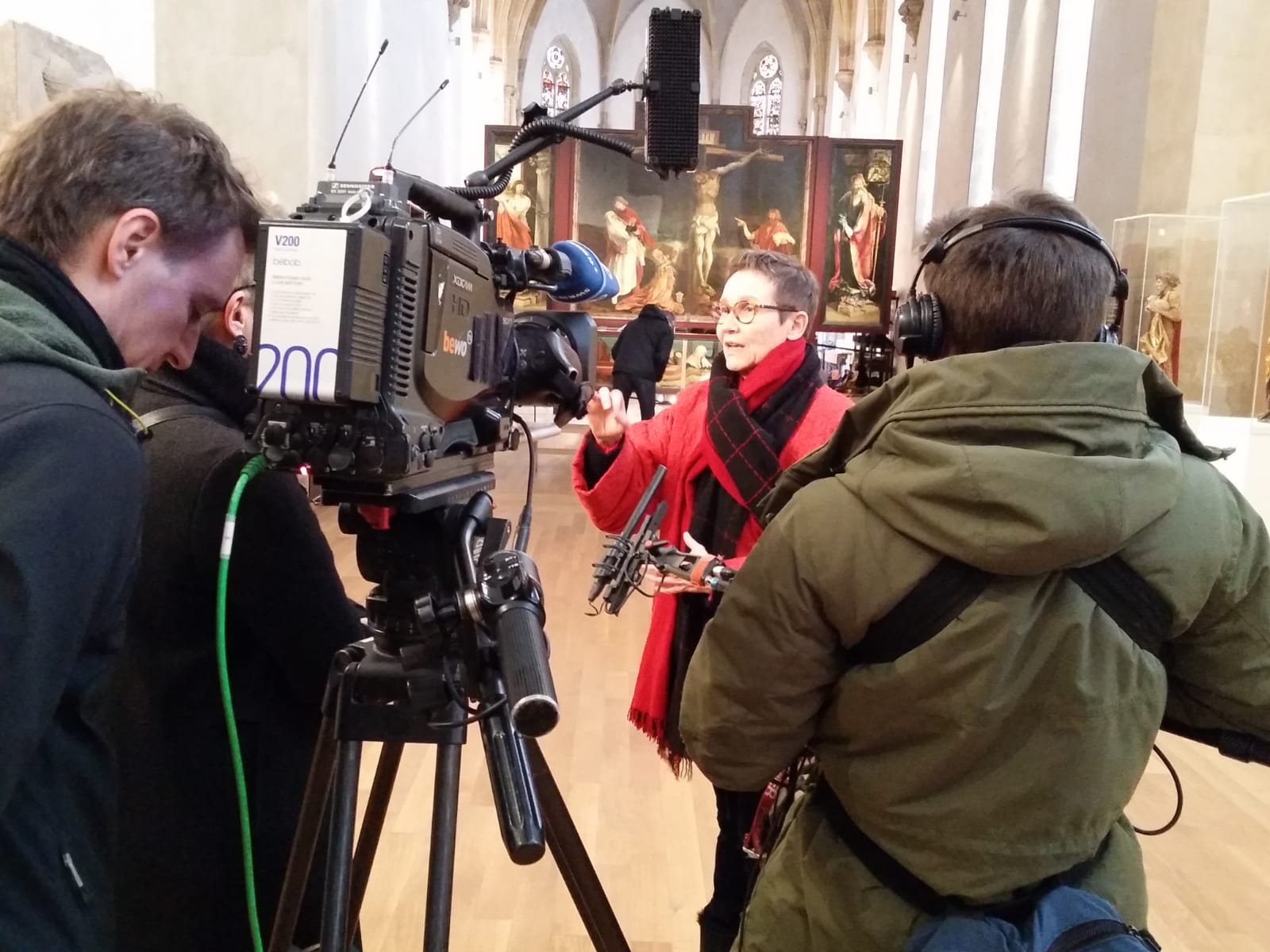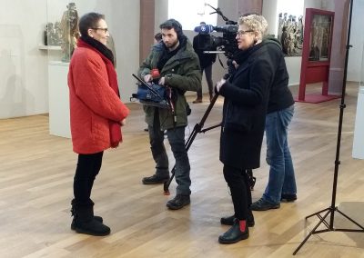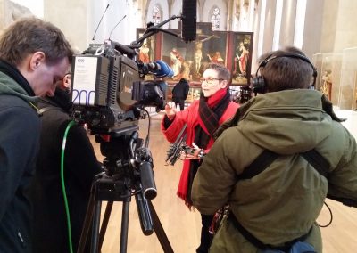 Seit Beginn der Restaurierungskampagne des Isenheimer Altars berichtet die Presse immer wieder über die laufenden Arbeiten im Musée Unterlinden und verfolgt aufmerksam die Arbeit der Restauratoren vor Ort. Letzte Woche war SWR TV zu Besuch und interviewte Direktorin Pantxika de Paepe und Chefrestaurator Anthony Pontabry. Wir sind schon gespannt auf den Beitrag!