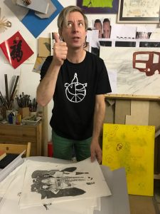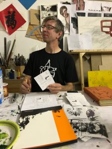 Wie viel Freude können Märchen eigentlich bringen? Wie ihr seht, unglaublich viel 🙂 So viel Begeisterung und Kreativität stecken im Atelier von Henrik Schrat. Endlich konnten wir den Berliner Künstler, der hinter diesen Wahnsinns-Bildern zu den Grimm’schen Märchen steckt, persönlich kennen lernen. Zwischen Spaß am Fotografieren, Kaffeetrinken und Postkartensignieren durften wir einen Blick auf seine Tuschezeichnungen auf Reispapier, die im Band II der Gesamtausgabe „Rodung – Kreuzung – Lichtung“ zu sehen werden sind, werfen.